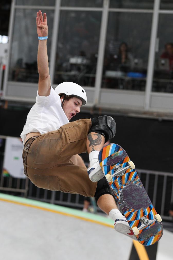 在19日的两场决赛上,伊顿始终戴着耳机,沉浸在自己的世界里。在上午的街式决赛中,14岁的日本神童小野寺呤云几乎击败了他。但是赛后谈起来,他表现得十分轻松。“我早上醒来的时候就很有信心,我了解我的技巧,我知道会拿到多少分。我只是到了这里,然后实现了。”